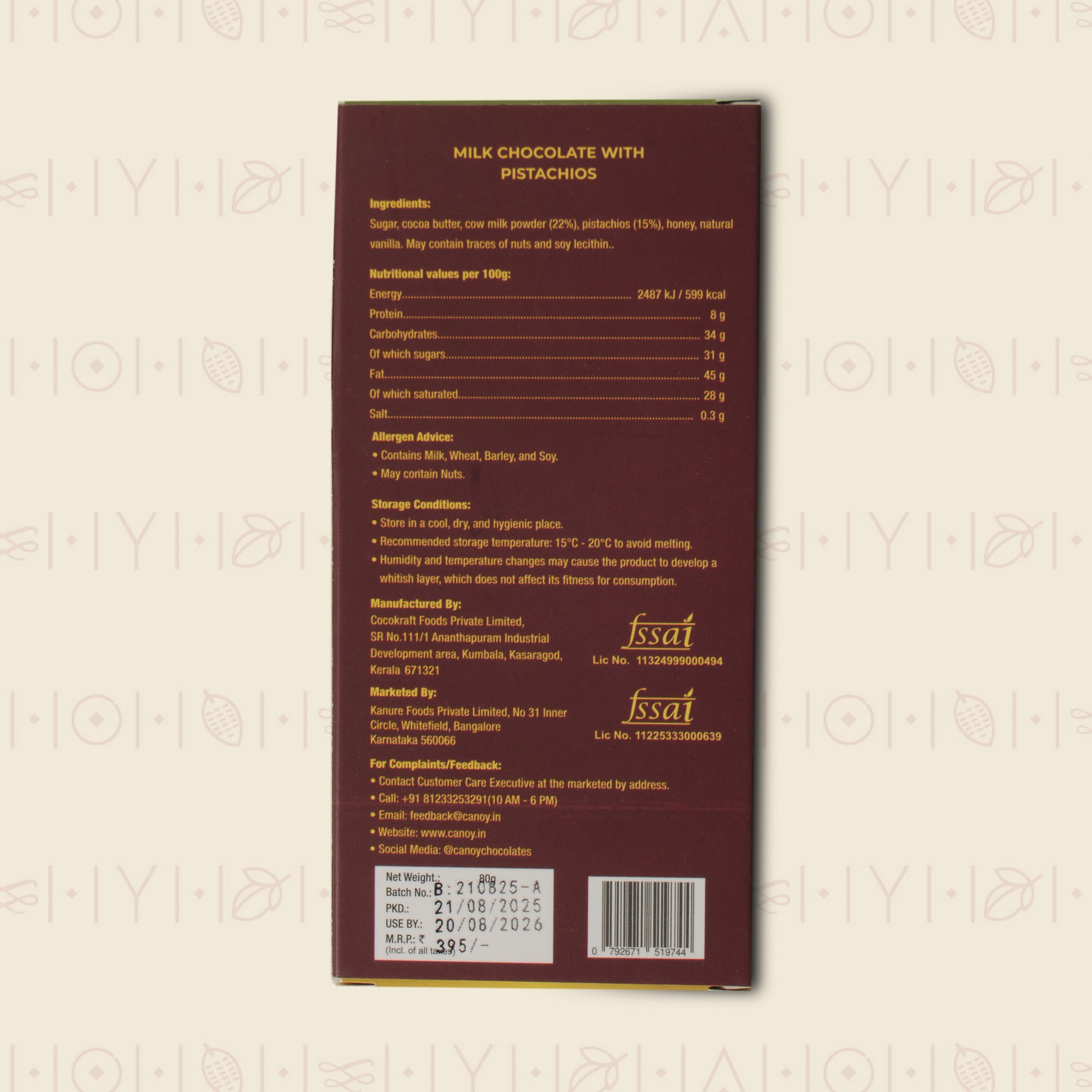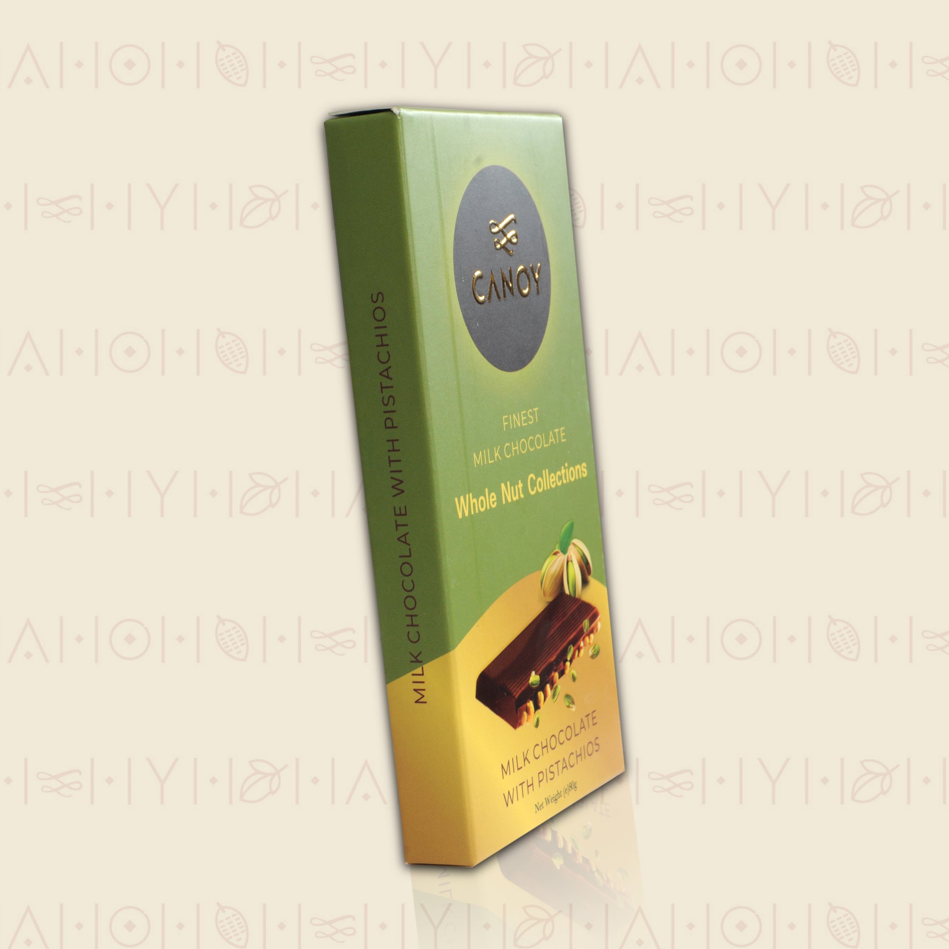 Indulge in our premium milk chocolate enriched with whole Pistachios, carefully crafted using natural ingredients. This exquisite combination offers a rich, smooth texture paired with the satisfying crunch of Pistachios, delivering a balanced flavor that enhances your mood with every bite. Perfect for those seeking a refined chocolate experience that blends quality and taste expertly.